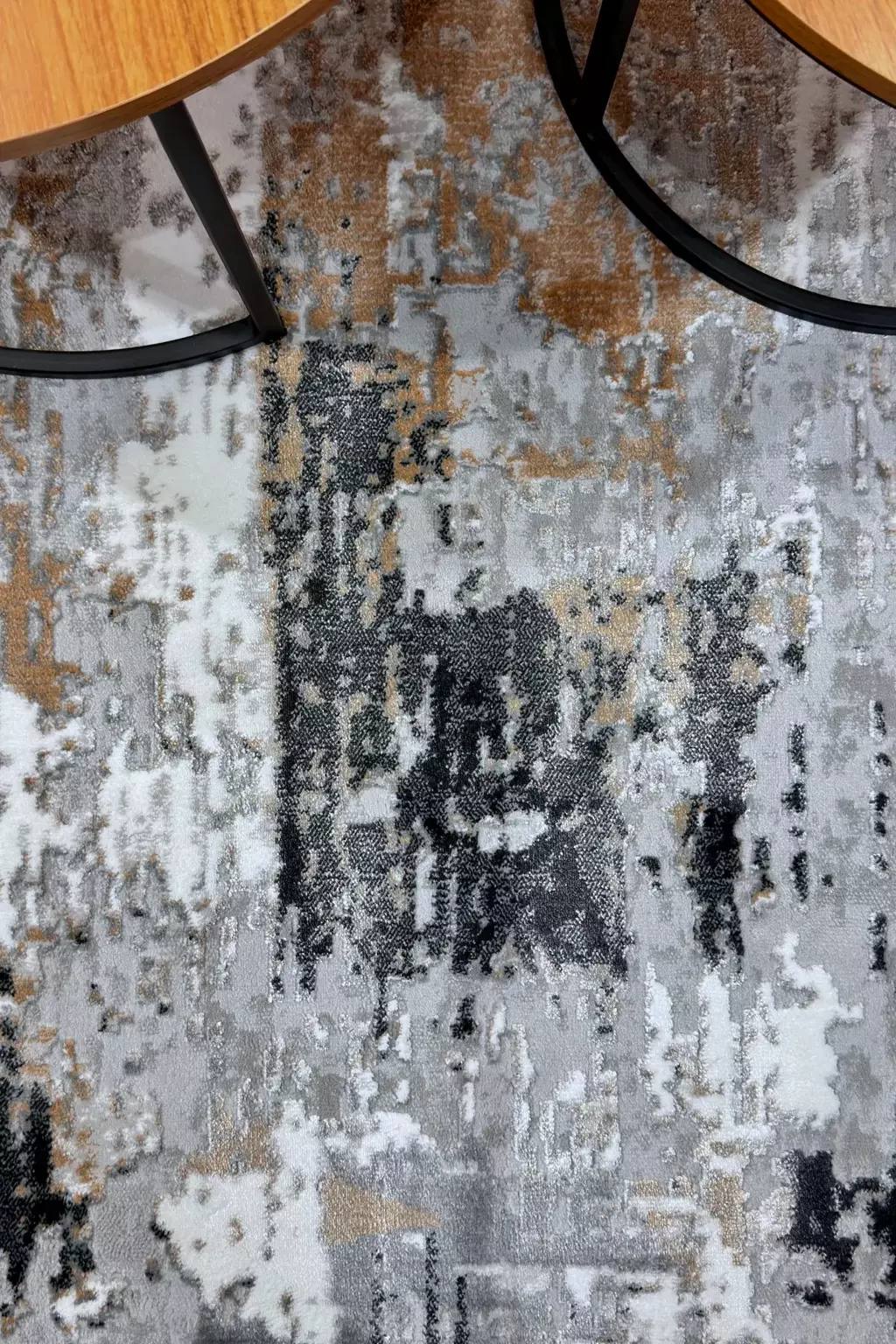 O Tapete Vienna Cinza Estonado - Possui tons de cinza, Off White, e Bronze – Levando mais destaque e movimento ao ambiente.
