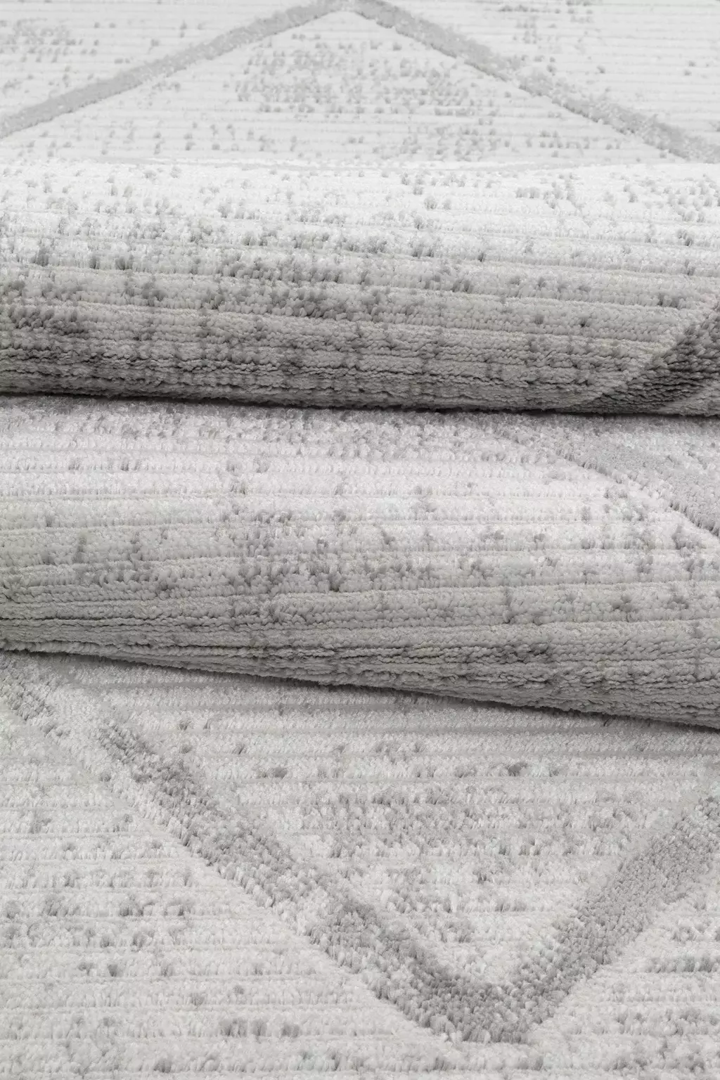 O Tapete Capri Cinza 2,50x3,00m - Maior parte possui tom de Cinza Claro - possui pequenos detalhes em Off White e também em Cinza Médio, com pequenos desenhos em formato de riscos - Levando mais destaque e movimento ao ambiente.