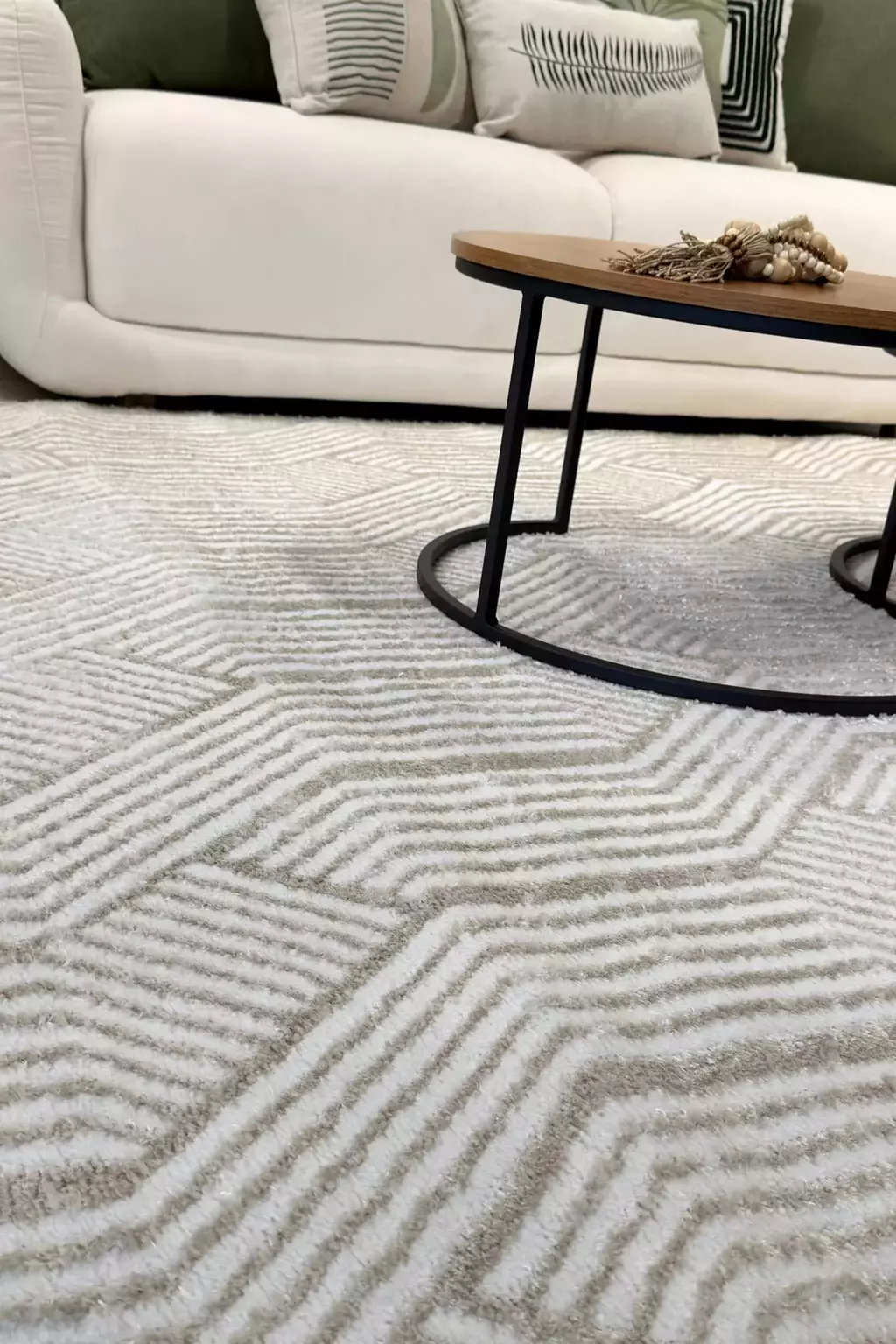 Transforme seu ambiente com o Tapete Ibiza que combina conforto, beleza e sofisticação. Com tonalidades de bege claro e fios levemente dourados, este tapete egípcio traz uma aura de requinte e aconchego para qualquer espaço.